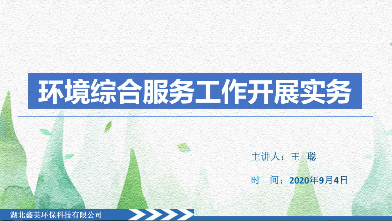 2020年9月4日上午,湖北鑫英環(huán)保科技有限公司在公司二樓會(huì)議室組織開展了《環(huán)境綜合服務(wù)工作開展實(shí)務(wù)》的主題培訓(xùn)。本次培訓(xùn)由公司技術(shù)工程師王聰主講,公司的技術(shù)部在公司的全體人員參加。